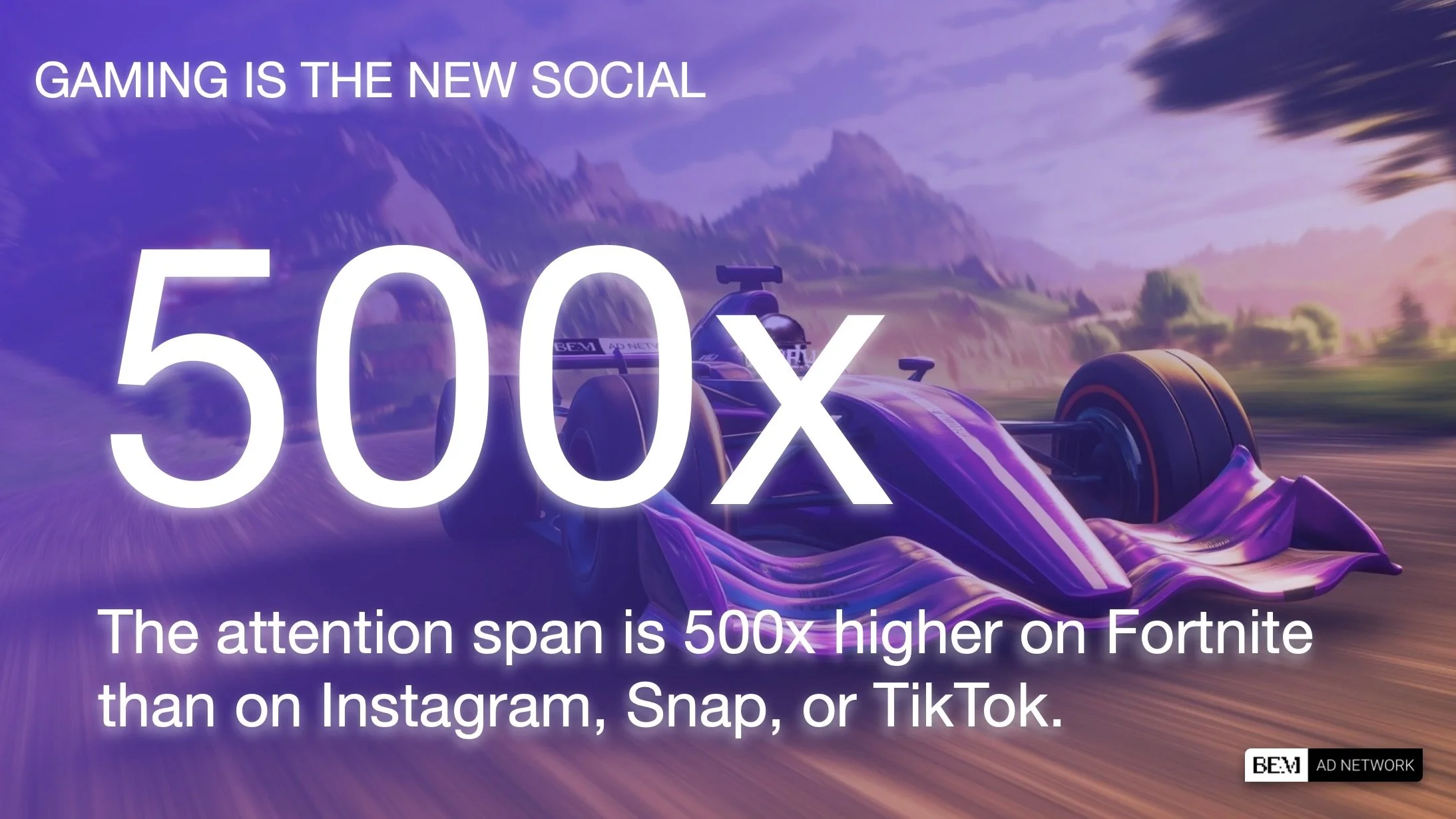 The BEM Ad Network is the first tool that enables media agencies to run ad placements on social gaming platforms like Fortnite. By bridging brands with the most engaged gaming communities, we offer a high-impact and scalable approach to in-game ads.