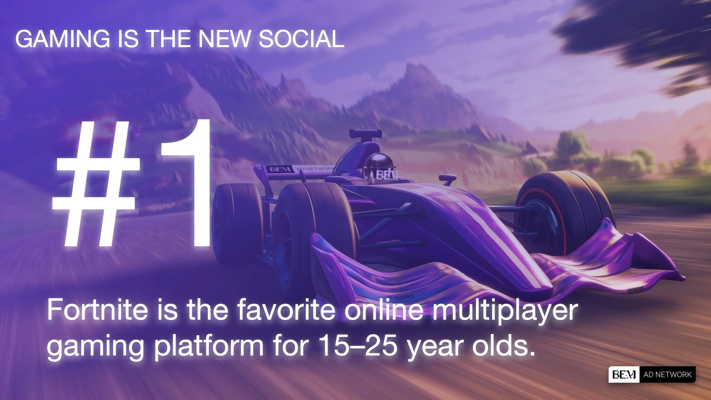 The BEM Ad Network is the first tool that enables media agencies to run ad placements on social gaming platforms like Fortnite. By bridging brands with the most engaged gaming communities, we offer a high-impact and scalable approach to in-game ads.