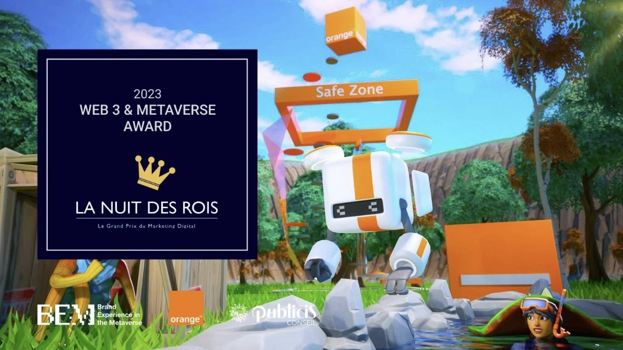 bem.builders and Publicis Conseil won the Silver Award in the Web3 & Metaverse category at the Twelfth Night Digital Marketing Awards ceremony in Paris for the Orange Safe Zone campaign.